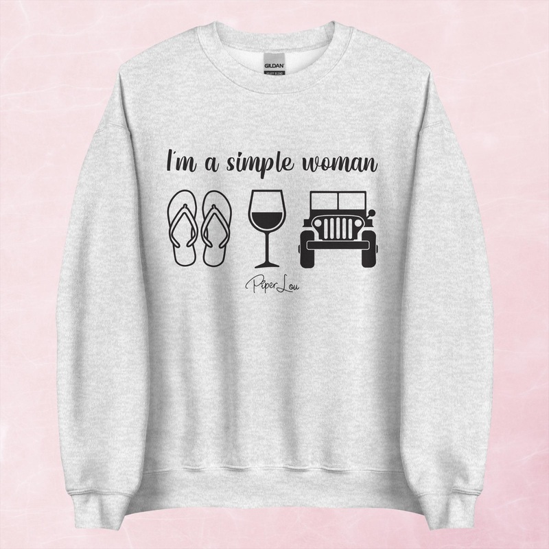 I’m A Simple Woman Flip Flops Wine Jeep Graphic Crewneck Sweatshirt