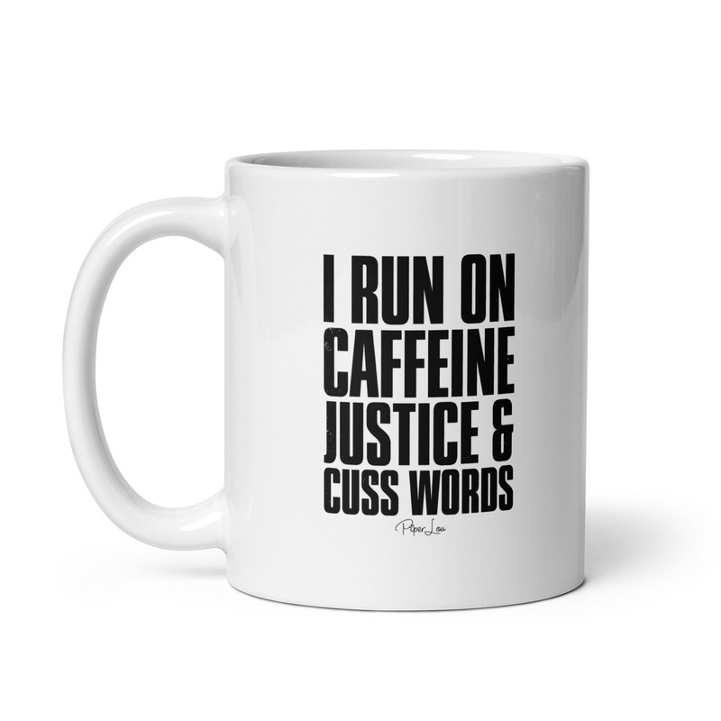 I Run On Caffeine Justice And Cuss Words Ceramic Coffee Mug