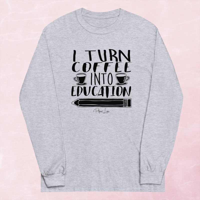 I Turn Coffee Into Education Graphic Long Sleeve Tee