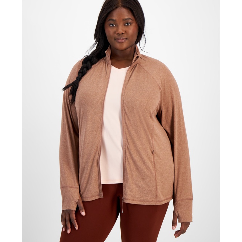 ID Ideology Women's Dusty Rose Zip-Front Long Sleeve Jacket The perfect pre or post workout throw-on-and-go layer, this plus size jacket from ID Ideology is cozy and versatile with its versatile zip front and thumbhole cuffs. Product Features Imported Mock