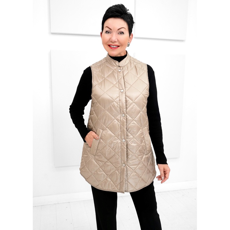 Turn heads with the Ilse Jacobsen Pearl Quilted Vest. This stunning vest features a lightweight, soft-padded design with a unique quilt pattern and a chic, shiny finish that catches the light beautifully. Its the perfect layering piece to keep you warm and