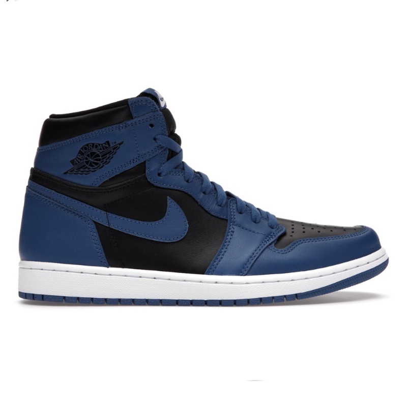 Condition: Brand new. The Air Jordan 1 High Dark Marina Blue arrives with a smooth black leather upper with Dark Marina Blue overlays and Swooshes. On the ankle wrap, a black Jordan Wings logo pays homage to the origins of the Air Jordan 1. From there, a c