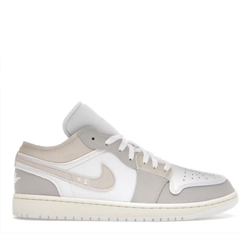 The Jordan 1 Low SE Craft Inside Out Tech Grey comes in a Tech Grey, Light Orewood Brown, White, and Sail color palette.The SE Craft Inside Out Tech Grey Jordan 1 Low has an upper composed of a variety of materials, including textured leather, suede, and synthetic materials. The lacing system provides a secure fit, while the collar and tongue are padded for comfort. The midsole of the shoe is responsive and padded, providing impact absorption and support. The shoe’s durable rubber outsole features a multidirectional traction pattern for stability. The sneaker features the Nike Swoosh on either side, Jumpman branding on the tongue, and the Air Jordan Wings logo on the heel.