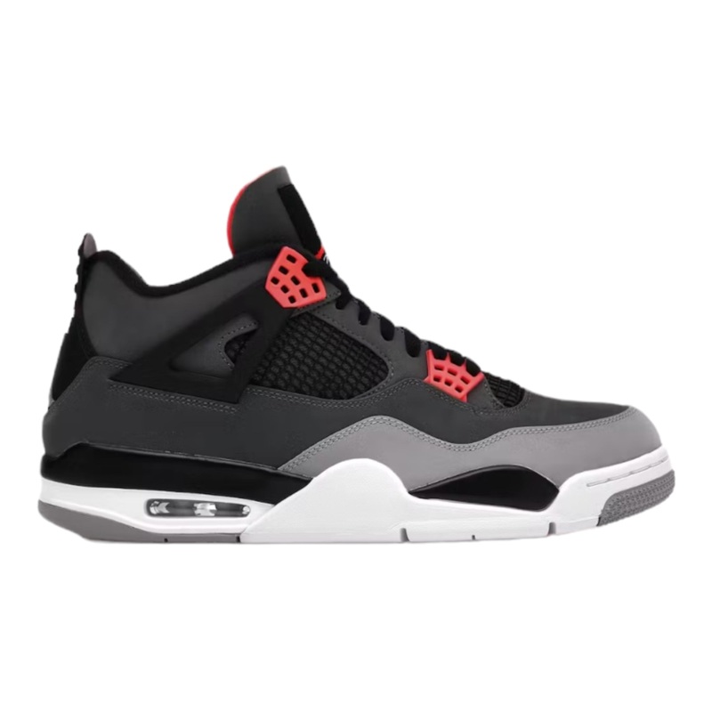 Condition: New The Air Jordan 4 Infrared features a tonal grey Durabuck upper with black TPU mesh inserts, tech straps, and heel tabs. Hits of Infrared on the lacing system and woven Jordan Flight tongue label add a sharp contrast to the neutral-toned base