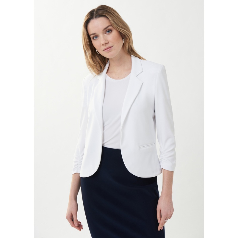 Introducing versatility at its finest, with this notched collar classic blazer. With the look and feel of an unstructured blazer, this cover-up can easily be paired with its matching pencil skirt, your favourite jeans, or sleek leather pants. Features faux