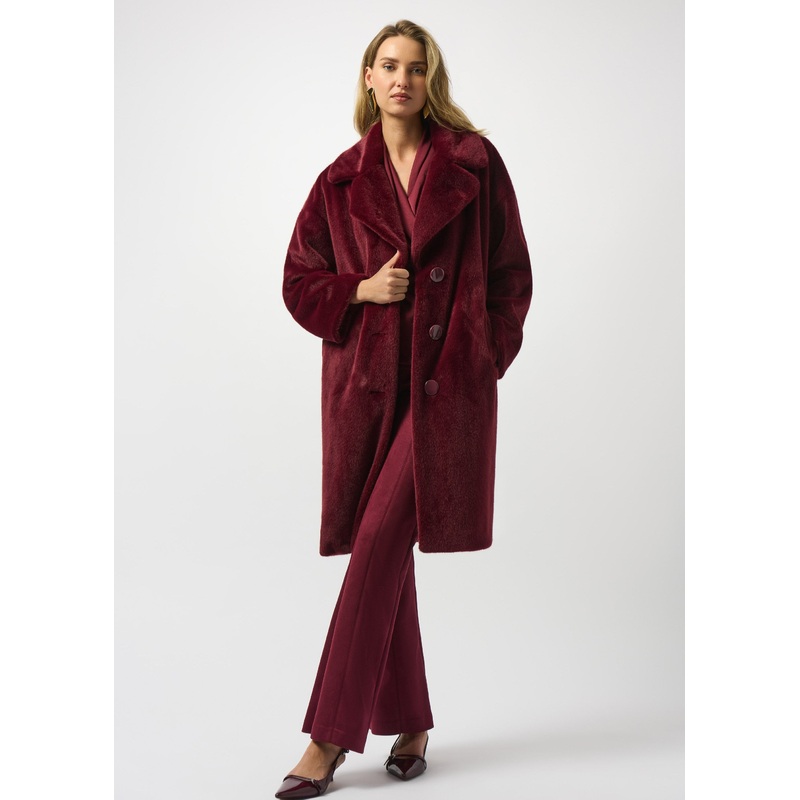 With a classic notched collar, straight silhouette, and front button closure, this plush faux fur coat is the definition of chic style. The perfect piece to take you from a day at the office to a night out on the town. (Copyright Joseph Ribkoff 2025) Faux