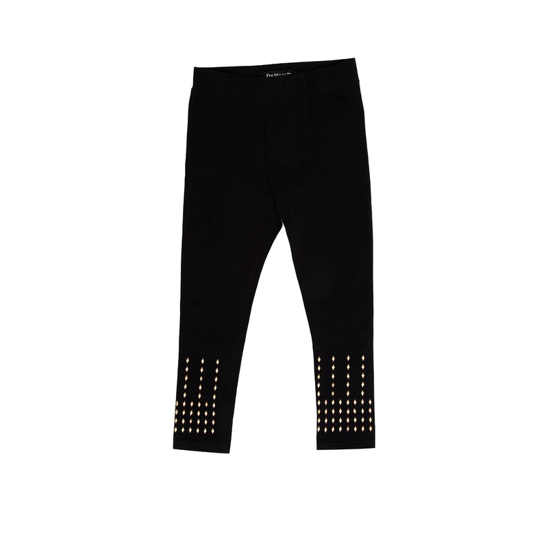Style & Fit :Girls Stud Leggings Black Fabric Specification:Fabric : CottonMaterial : 95% Cotton 5% ElastaneWash Care : Mild Wash | Don't Bleach | Dry in Shade | Mild IronHSN Code :6114200