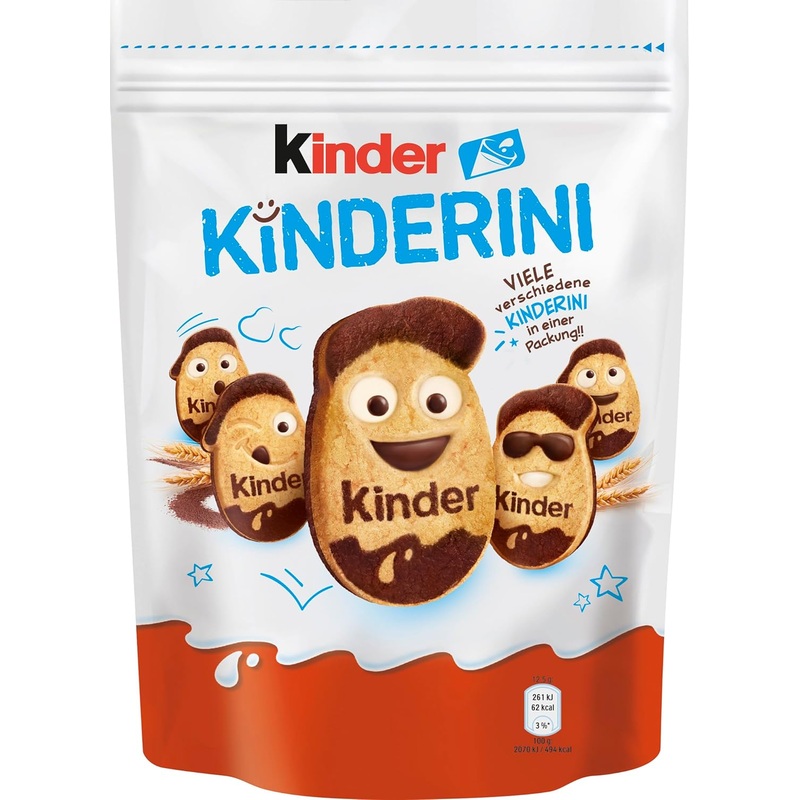 Kinder Kinderini Frollini Milk & Cocoa Biscuits 250g Kinderinis are the ideal companion for a balanced and tasty snack. Try them dipped in warm milk for a relaxing afternoon break or pair them with a cup of tea for a touch of sweetness during your break. I