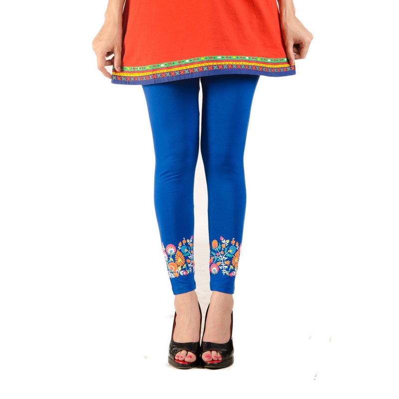 Ladies Leggings Ankle Length Viscose Lycra, Puff Print,Cobalt 95% Viscose, 5% Lycra Mild Wash, Dont Bleech, Dry in Shade
