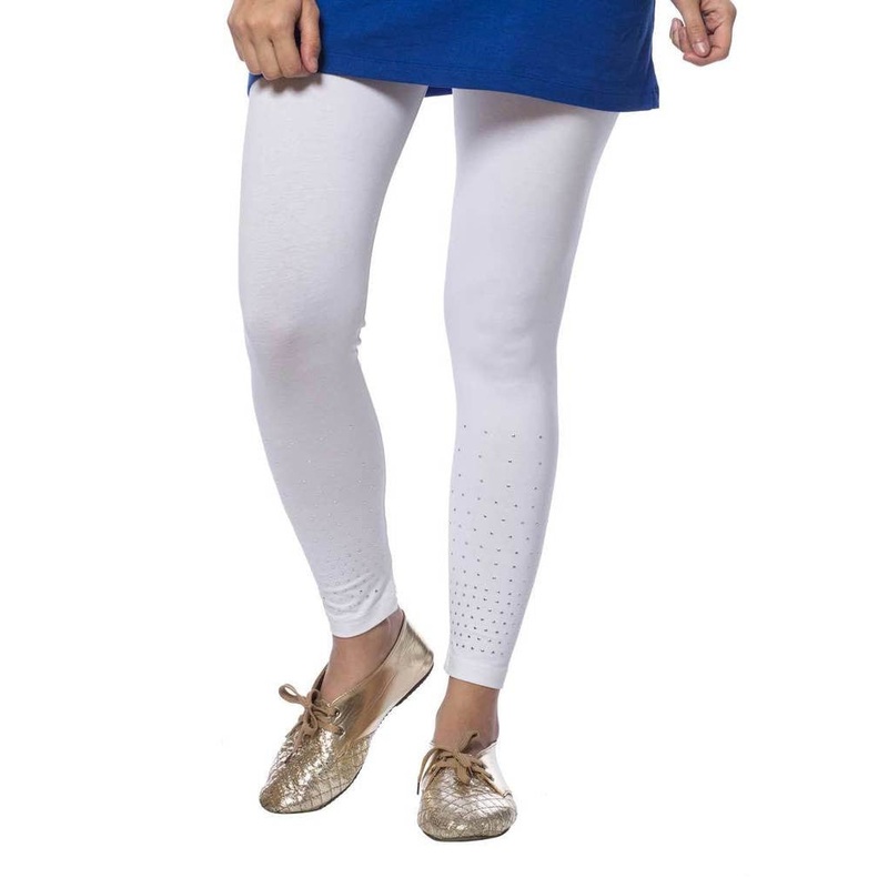 Ladies Leggings Ankle Length Cotton Lycra, Stud,White