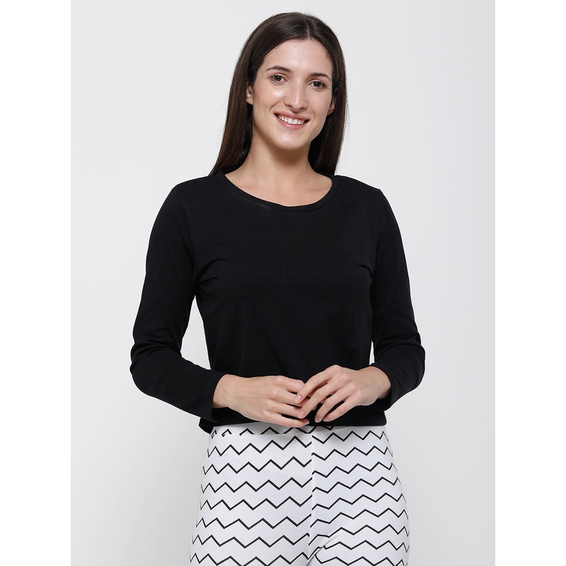 De Moza Ladies Crop Top Black Pattern: Solid Color: Black Fit: Regular Fit Style: Casual Wear Product Material: Cotton These style elements include a regular fit solid material with full sleeves crop top. Stylish clothing designed to be suitable both for e