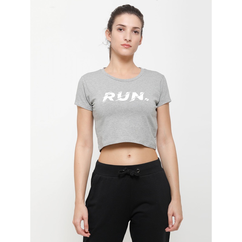 De Moza Ladies Crop Top Grey Melange Pattern: Solid Fit: Regular Fit Style: Casual Wear Product Material: Cotton These style elements include a regular fit solid material with half sleeves crop top. Stylish clothing designed to be suitable both for exercis