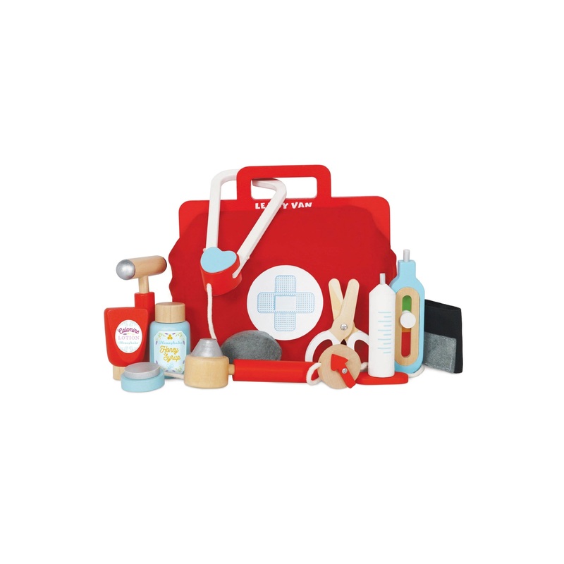 A nostalgic classic, this medical kit contains all the tools needed to dress wounds, give vaccinations, take temperatures, and checkblood pressure.