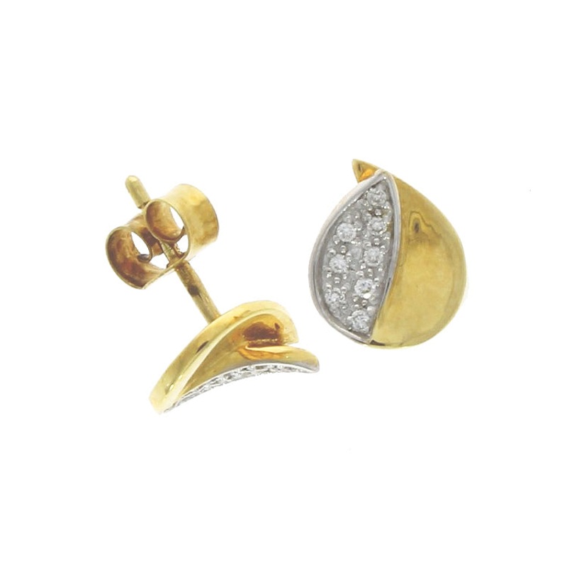 Stud earrings in a leaf shape set with round brilliant cut diamonds, set in 18ct yellow and white gold.