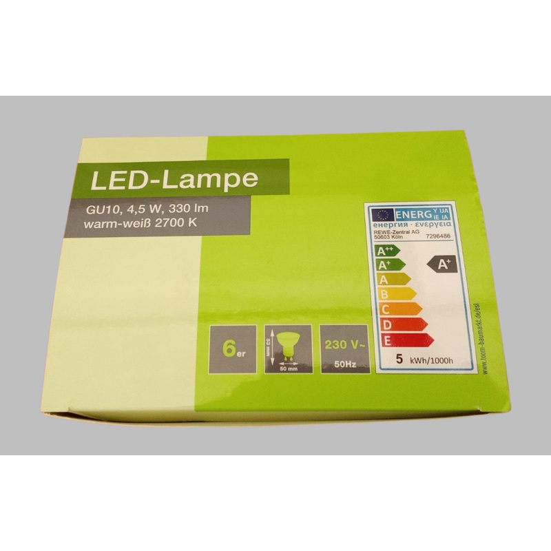 Led Lampe GU10 4,5 W Led Lights |Led Lampe In Lebanon Brand:REWE Germany / Made in Germany, all approvals.TV, CE, GS test seal for Germany available, not a Chinese product.Technical data:Brand: REWE AG Germany Cologne NAN: 7296486Product type: LED Energy e