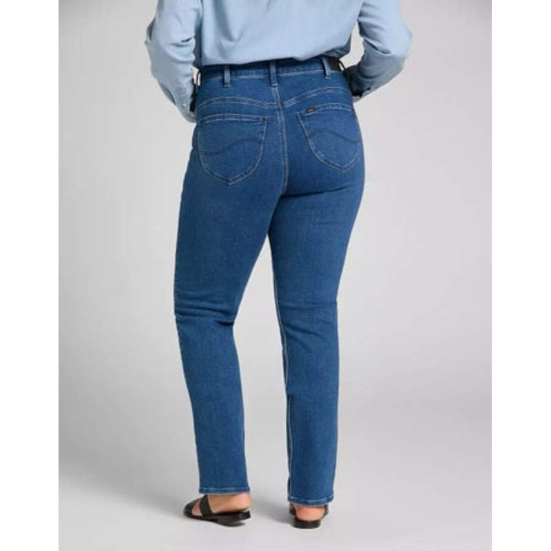 Lee Women's Blue Classic Straight Jeans blue slimming pants for plus-size women straight leg high waist flexible