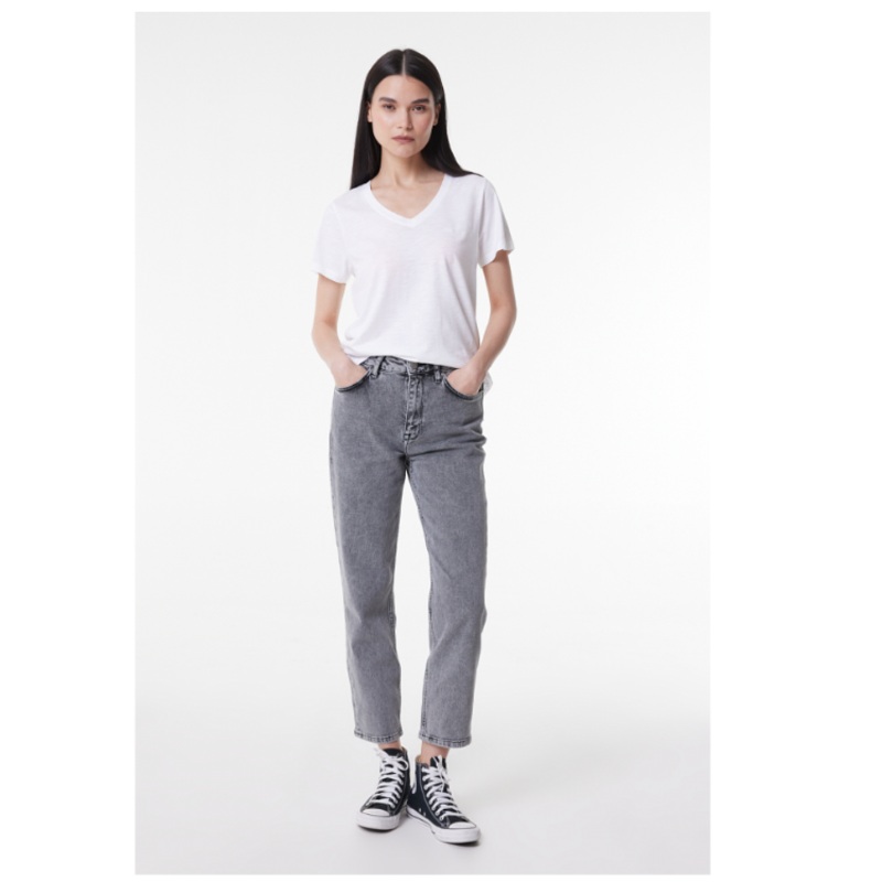 Lee Women's Moon Gray High Rise Carol Regular Straight Jeans_ Fabric Information: 99% Cotton 1% Elastane, Color: Moon Gray, Pattern: Regular Fit, Leg: Straight Leg, Waist: High Waist, Gender: Female, Product Name: Carol Regular Fit Normal Cut High Waist Li