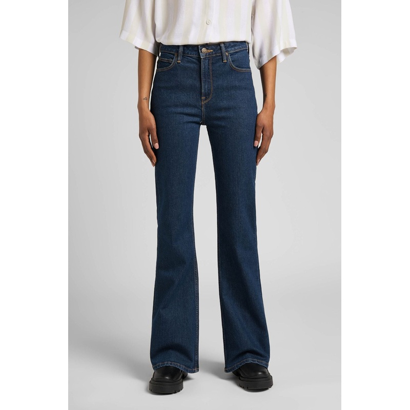 Lee Women's Navy Breese Flare Fit Jeans Fabric Information: 98% Cotton 2% Elastane, Color: That's Right, Pattern: Flare Fit, Leg: Bell Bottom, Waist: High Waist, Gender: Female, Product Name: Breese Flare Fit High Waist Bell Bottom Flexible Jean Jeans Wash