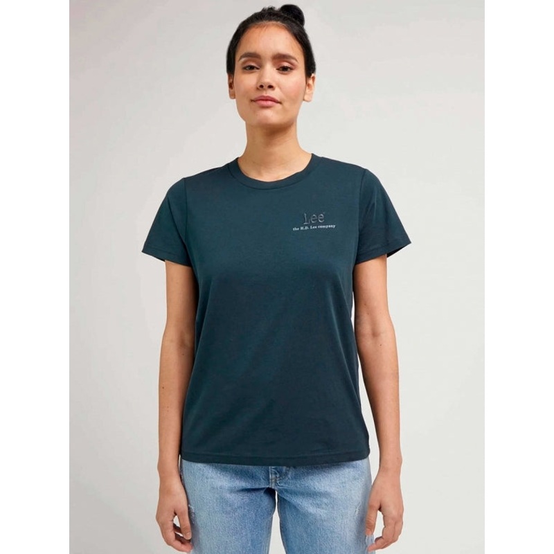 Lee Women's Tee Charcoal Gray 100% Cotton Short Sleeveless Lee Small Logo T-shirt COLOR;_Charcoal GraySLEEVE;___ShortMATERIAL;___100% CottonFIT;_Regular Fit This Lee Women's Tee in charcoal gray offers a comfortable fit with its 100% cotton fabric, perfect