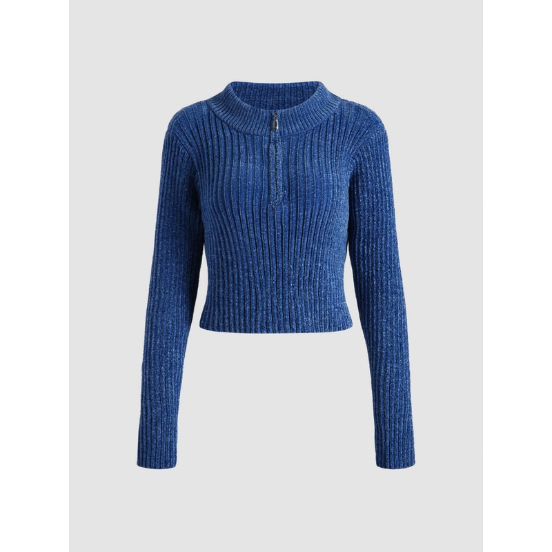 LeGer Women’s Blue Long-Sleeve Zippered Crop Top | LeGer in Lebanon