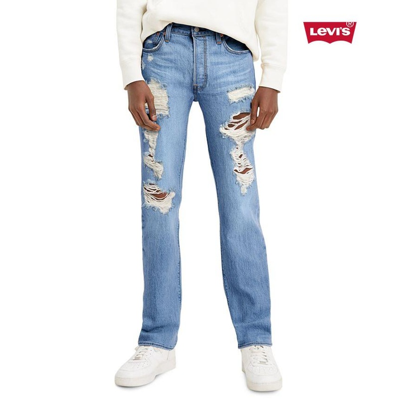 Levi's Men's Blue Ripped Jeans 100% cotton Non-stretch Denim Button fly 5-pocket styling
