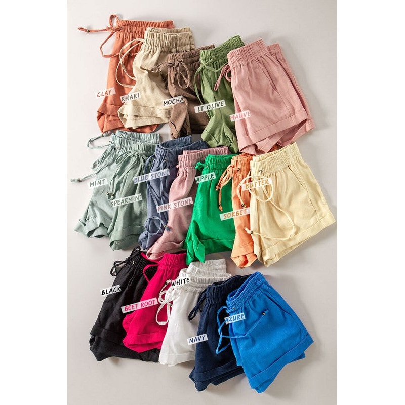 This colorful linenshort is the perfect go to summer short! It features an elastic waist with string tie closure, cuffedhem and slant pockets. They will keep you cool and comfy in all your adventures! 55% linen, 45% viscose Inseam - 2.5" Length - 11" Actua