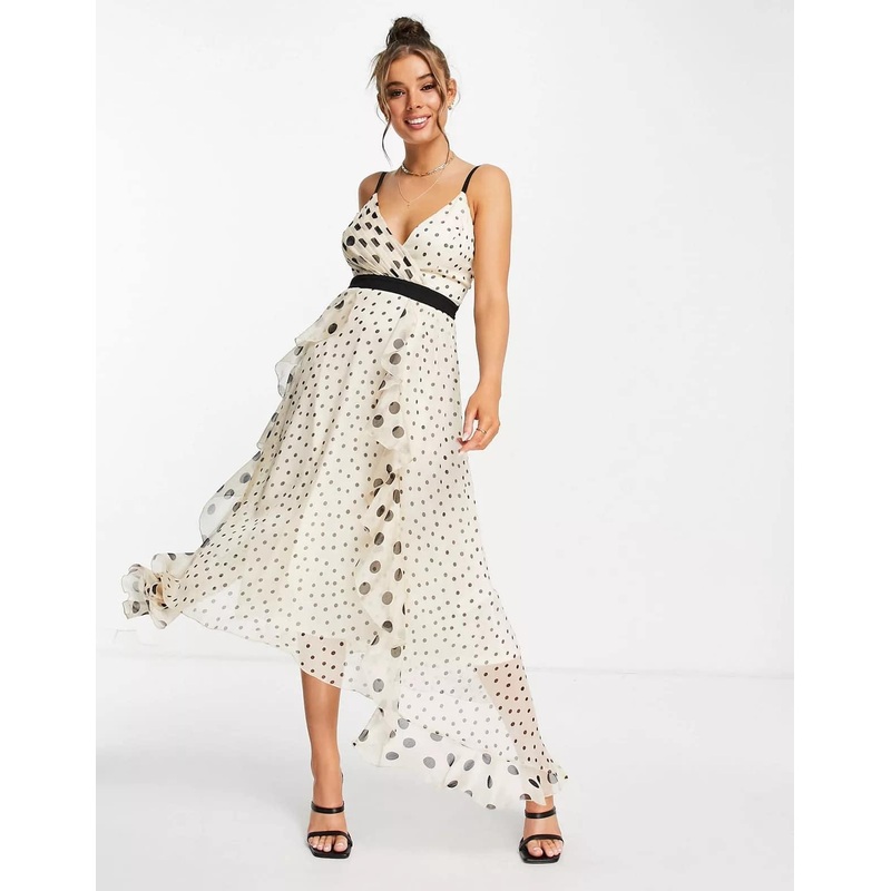 Lipsy Women's Multicolor Spot Maxi Dress Zip back fastening. Pair with the black pump heels and a clutch!