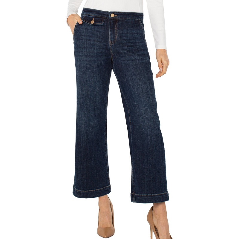 Crafted in a deep, darker wash, this jean features a flattering wide-leg silhouette that elongates the leg and moves with ease. Thoughtfully designed with one welt pocket and one slash pocket for a tailored touch, it blends classic style with everyday func