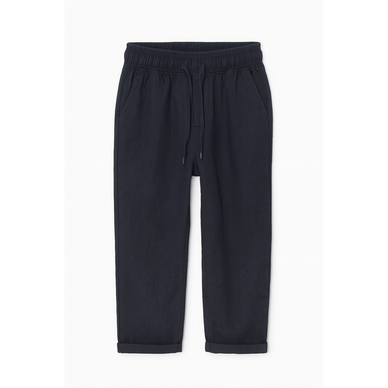 Mango Boy's Navy Denim Pant Mid rise Waistband with a tie closure 2 pockets 55% linen, 45% cotton Pockets lining 65% polyester, 35% cotton Colors in studio shots may vary due to light differences