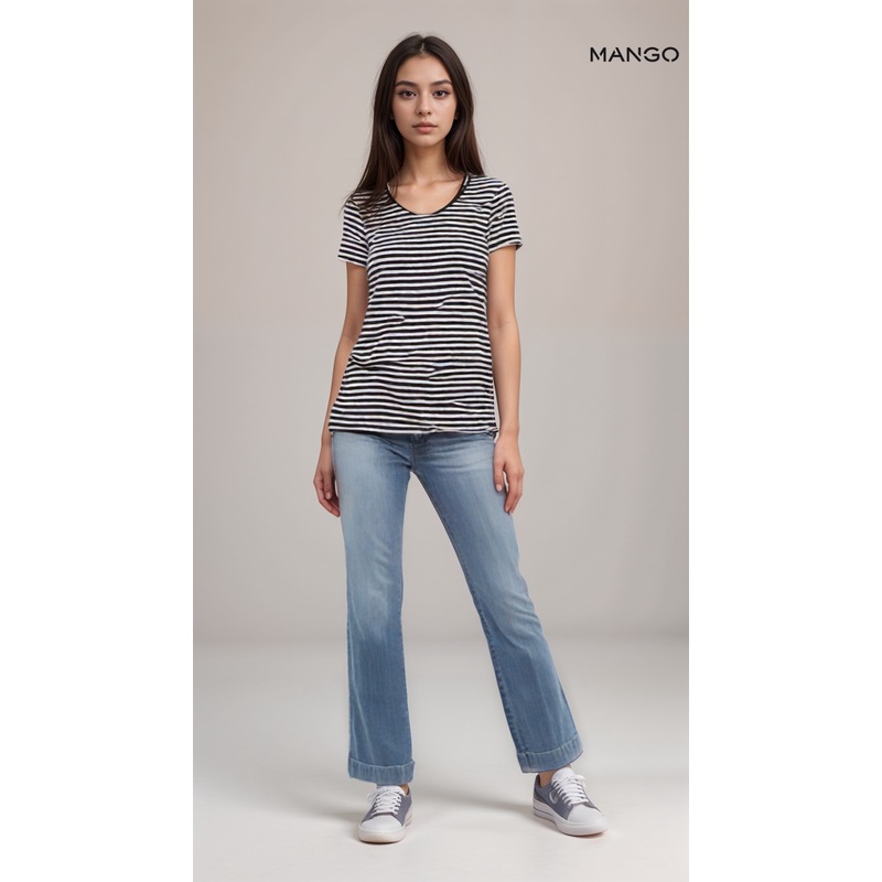Mango Women's Black/White Striped Short-Sleeve T-Shirt Design & Fit A trendy Black/White Striped short sleeve t-shirt with a relaxed or slightly structured fit, perfect for casual and chic styling. Material Made from soft, breathable fabric like cotton or