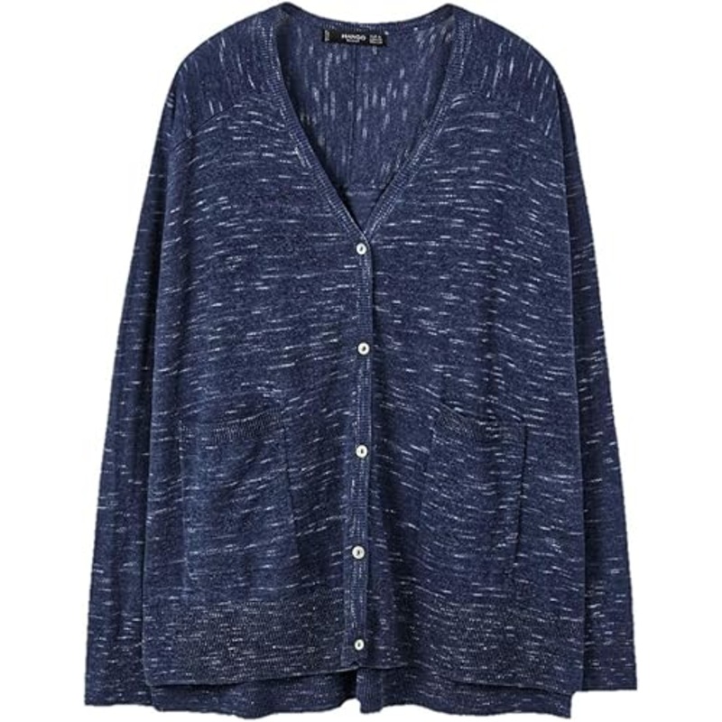 Mango Women's Navy Flecked fine Knit Cardigan Closure type: Button Weave type: Rib Neck style: V-Neck Sleeve type: Long Sleeve pockets 65% polyester, 35% cotton