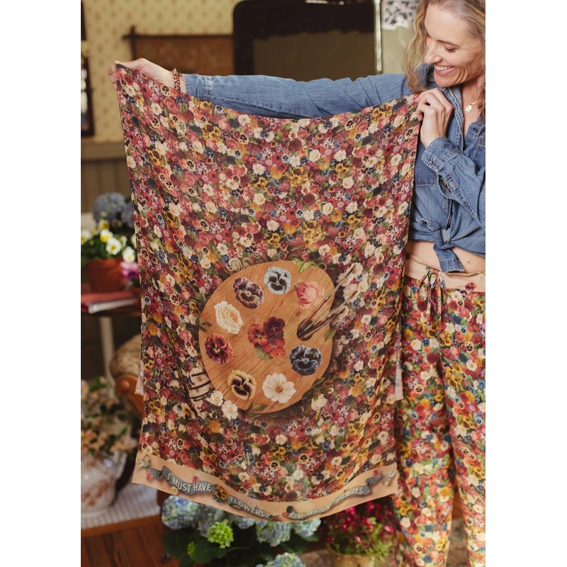 Inspired by an antique seed catalogue showing a painters palette of flowers, this print layers over 50 blossoms from 1800s catalogues into one of our most intricate designs. The trim features a lithograph banner from the same era with a quote by Claude Mon