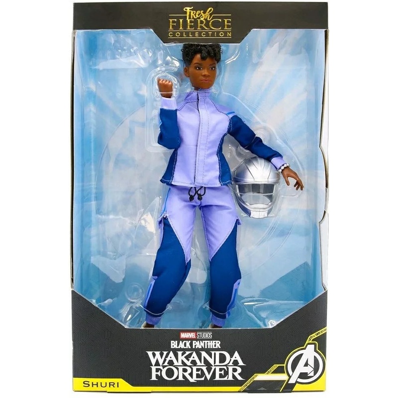 Marvel Black Panther Wakanda Forever Shuri Fashion Doll TG1393 Introducing the Marvel Black Panther Wakanda Forever Shuri Fashion Doll, inspired by the iconic character portrayed by Letitia Wright. This 11.5 inch doll features fully articulated joints with