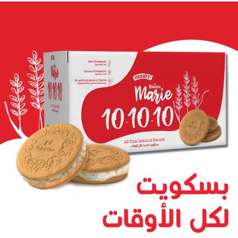 Mastro Biscou Marie Biscuit 10x75g Nutrition Facts : Calories : 254 Total Fat : 15g Total Carbohydrate : 72g protein : 10g