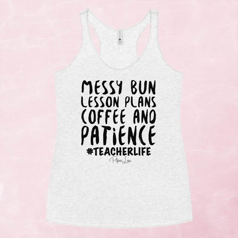 Messy Bun Lesson Plans Coffee And Patience Graphic Tank Top