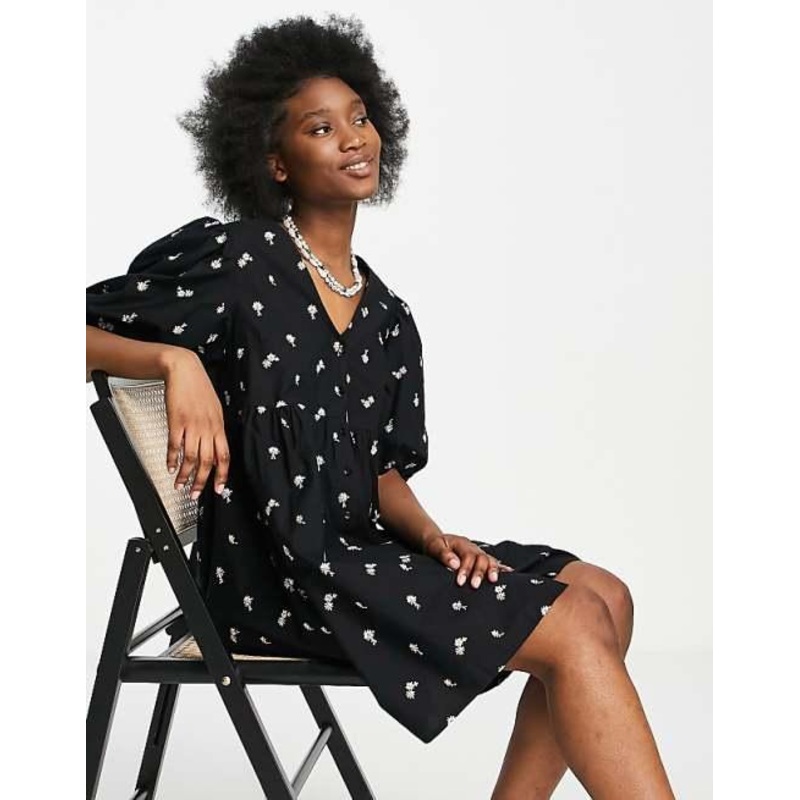 Miss Selfridge Women's Black Smock Dress ANF3358 Miss Selfridge daisy embroidered_smock dress in black The classic black color ensures easy pairing with various accessories, making it a go-to choice for both laid-back and dressed-up occasions.