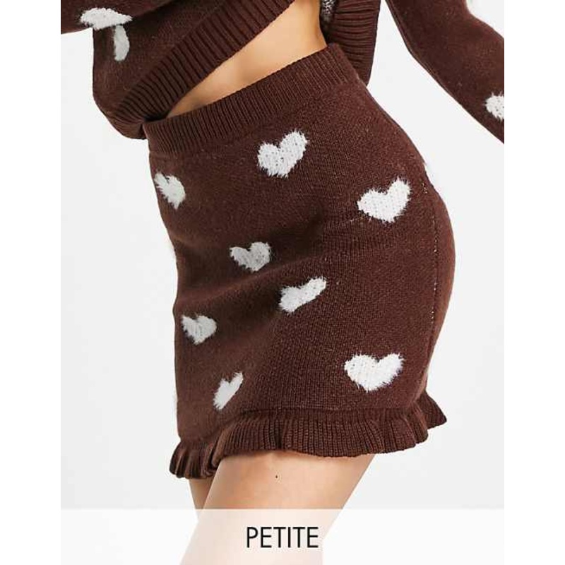 Miss Selfridge Women's Brown Heart Printed Skirt ANF2420 Miss Selfridge petite heart mini skirt with frill hem in chocolate _The warm brown hue provides an easy-to-style base, allowing the skirt to be paired with various tops, from neutral shades to vibran