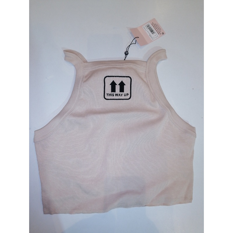 Missguided Women's Beige Crop Top AMF1612 petite slogan rib square neck crop _