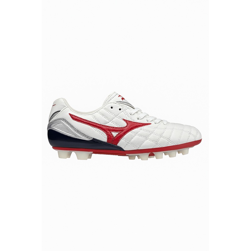 Mizuno Kids Multicolor Incision 2 Jr MD Football Sneakers Step onto the pitch in style with these Mizuno football boots, perfect for young athletes. They feature a unique quilted white and silver upper for enhanced ball control and comfort, accented with b