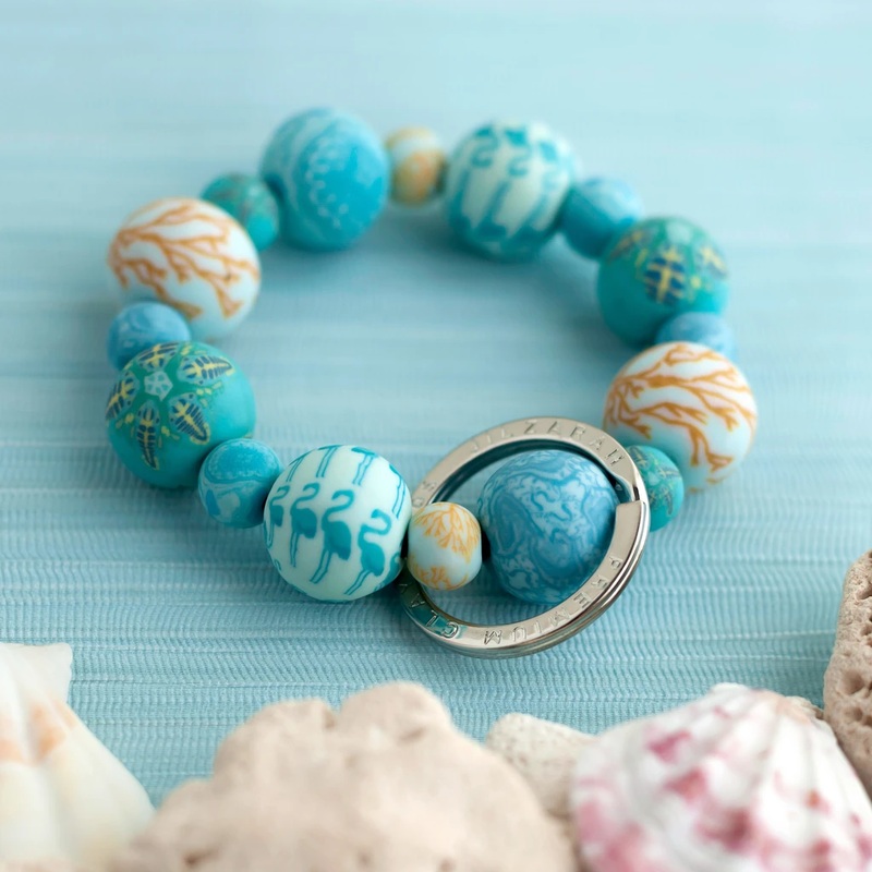 Got your hands full? This clever design allows you to express your style while keeping your keys accessible and your hands free! Handcrafted 10mm and 18mm polymer clay beads Lead-free, nickel-free and cadmium-free Ultra-durable 1.8mm elastic cord Silver ke