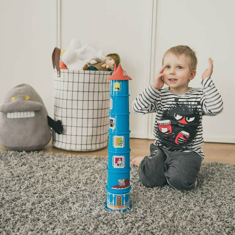 Suitable for children of many ages. The set has seven numbered jars that can be conveniently stored or arranged nested. The jar set is a versatile and educational toy that does not take up much space in the children’s room. Stackable jars offer a challenge for the little ones and only the imagination is the limit when playing with the jars: in addition to the tower and the Moominhouse, they can also be pots, dishes, parts of the tower, hats – whatever you can think of. Perfect for all little Moomin fans!