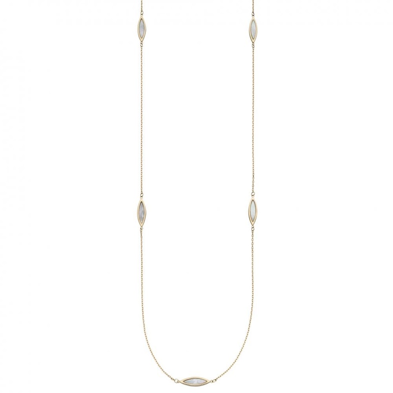 Beautifully wearable 80cm long necklace featuring marquise collar set mother of pearl.