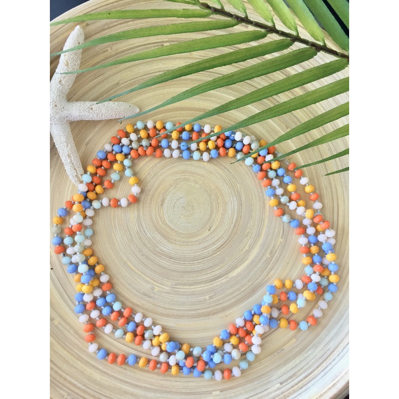 This Multi Color Bead Necklace is not only gorgeous but also versatile in how it can be worn. Wear it long or tie it in a knot or double or triple it for a shorter look. Double it several times and now you have a stylish bracelet. You can also wear one lon