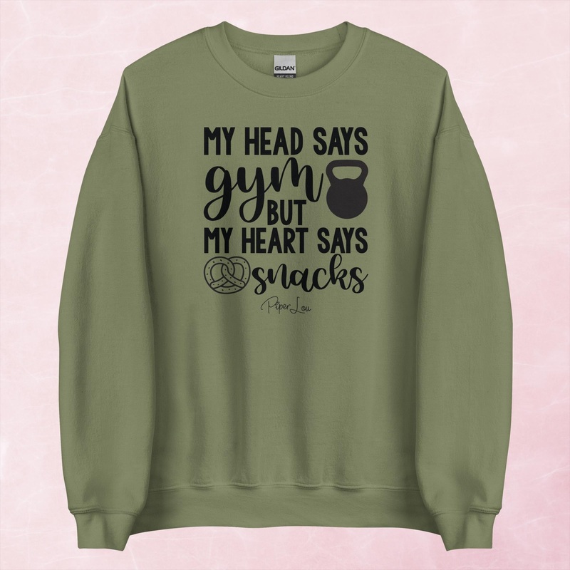 My Head Says Gym But My Heart Says Snacks Graphic Crewneck Sweatshirt