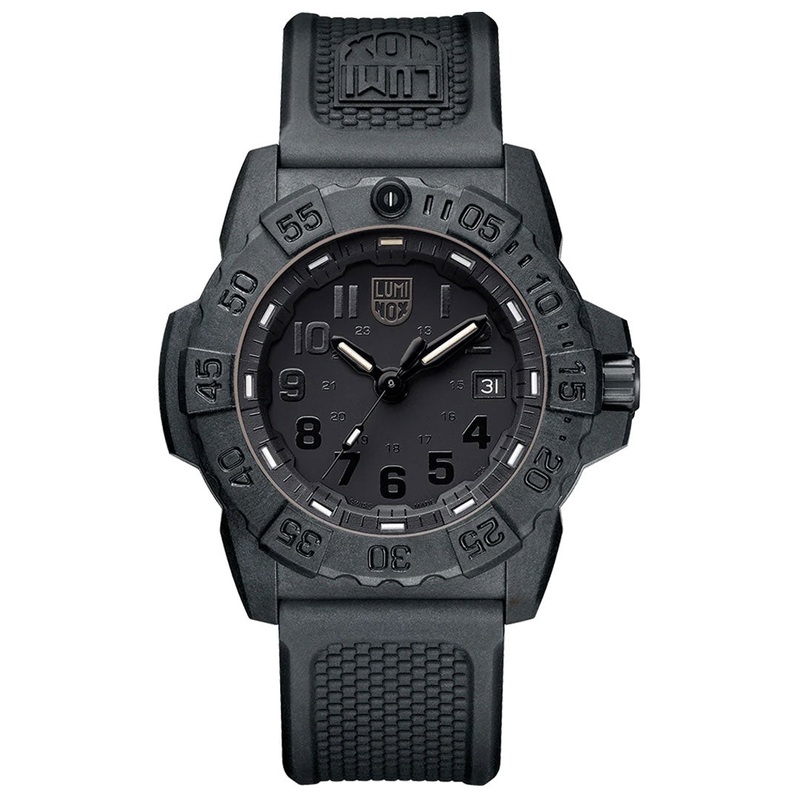 The Luminox Navy SEAL has a captivating 45 mm CARBONOX case with dive bezel and water resistance up to 200 meters; it can be used for diving. This black-in-black dial is equipped with the proven Luminox Light Technology lighting system. “Always Visible”, self-powered, for up to 25 years.