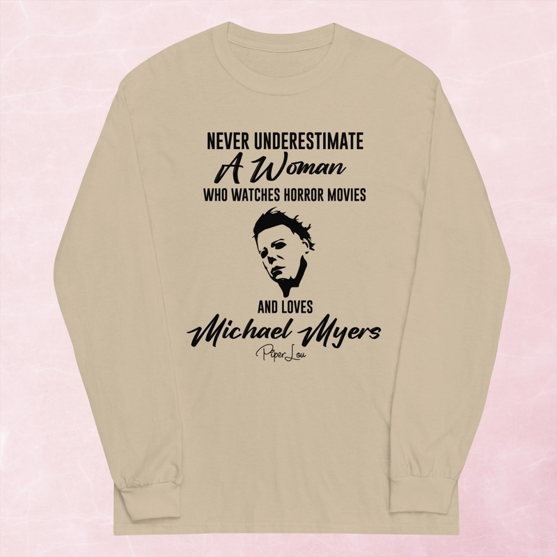 Never Underestimate A Woman Who Watches Horror Movies Graphic Long Sleeve Tee