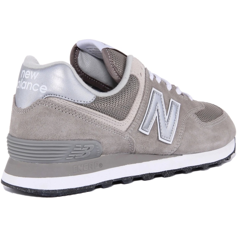 New Balance Women's Dark Gray Sneakers Introducing the New Balance WL574EVG Women's Low Top Lace Up Suede Mesh Trainers in Grey, Size 9. These sneakers are a timeless classic that combines retro-meets-modern design with ultimate comfort. Crafted with a pre