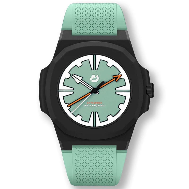 The Nanoband represents Nuun Officials commitment to modern watchmaking with its ‘DirtResist’ nanotech rubber strap. This strap is designed for a precise fit and optimal comfort, suitable for both indoor and outdoor environments. Sourced from top-tier manufacturers, the strap emphasizes both durability and aesthetic appeal.