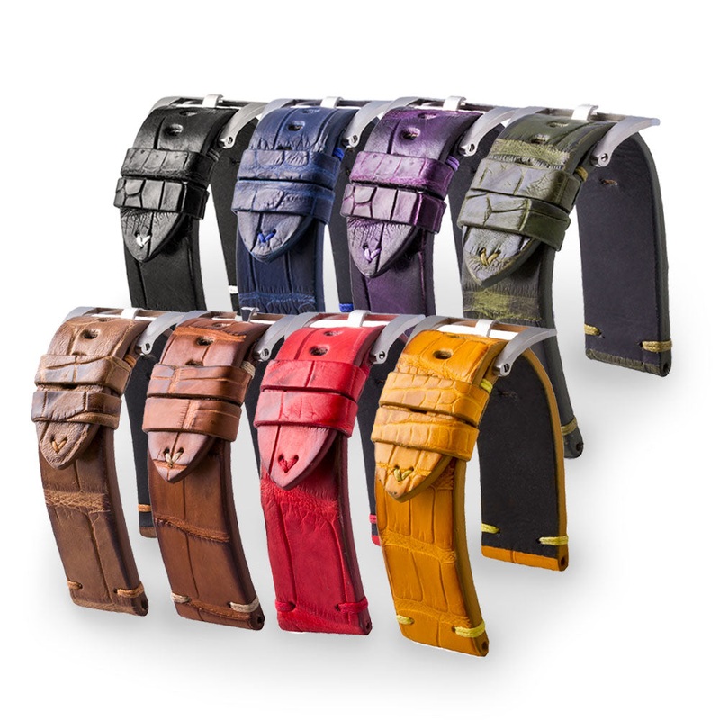 Panerai Luminor – Bracelet-montre cuir vintage luxe – Alligator (noir, bleu, violet, kaki, marron caf, marron moyen, rouge, jaune)