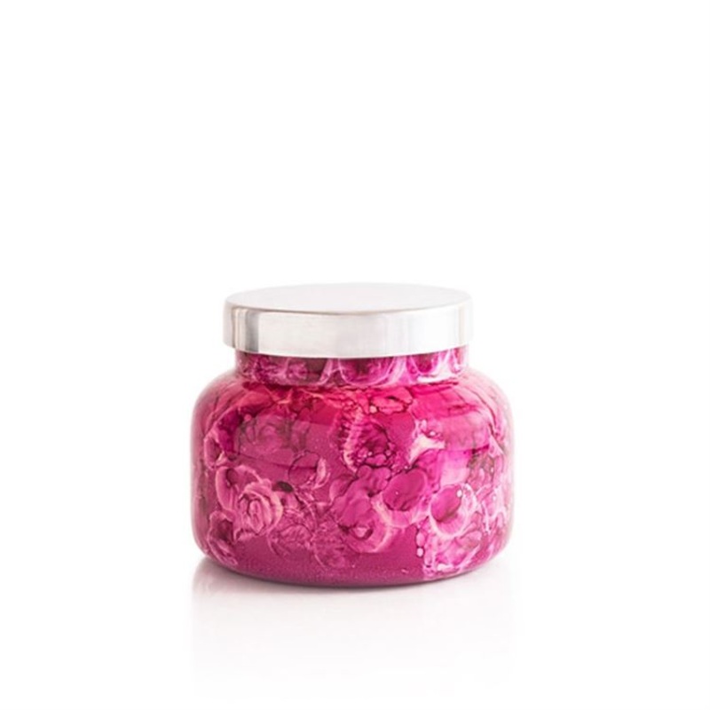 One of a kind, every time! Each finish is hand made, never a basic one in the bunch! This magenta Paris Watercolor Signature Jar is a major babe. It's rich in color and in fragrance. Enter a world of yum every time you light it with sweet scents of vanilla